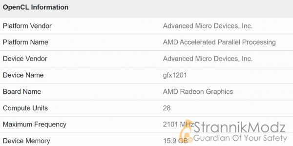 Судя по данным бенчмарка, адаптер при себе имеет 28 блоков WGP, это 56 CU-блоков или 3584 потоковых процессора. RX 7800XT имеет 3840 потоковых процессора.