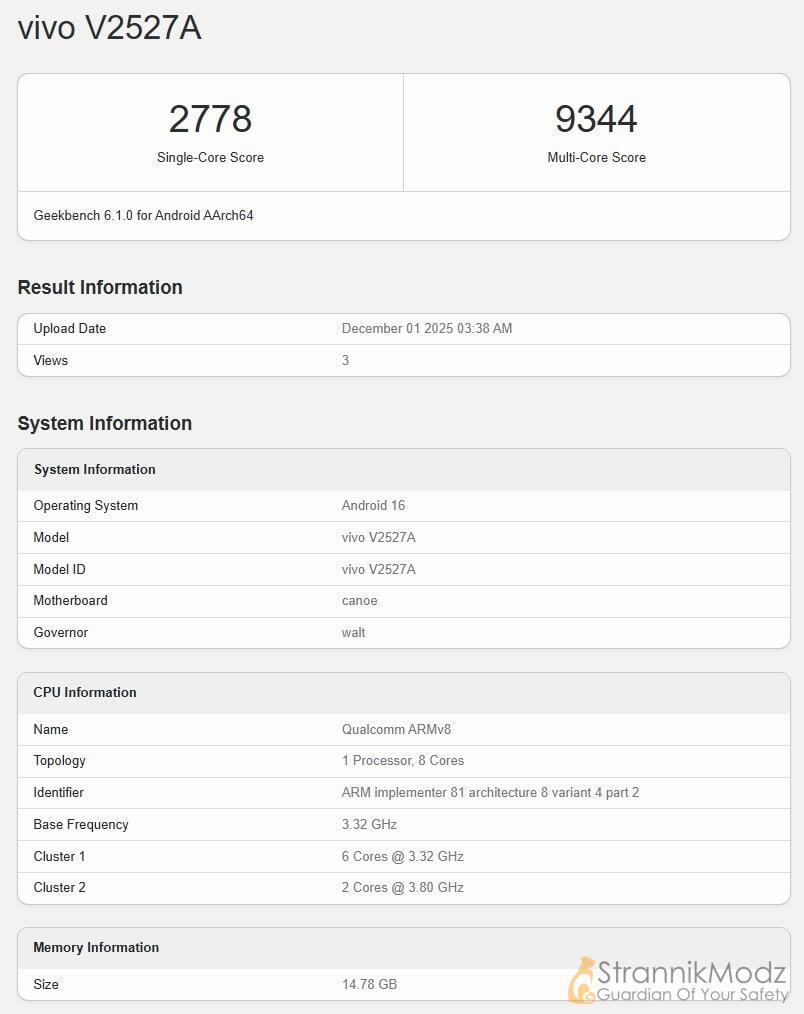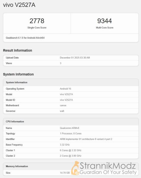 hulio3343 Сегодня, 09:18 7 Новости порталаVivo официально заявила, что S50 Pro Mini получит флагманский Snapdragon 8 Gen 5, и результаты тестирования полностью совпадают с этой информацией, включая частоты CPU. Устройство работает под управлением Android 16 и оснащается 16 ГБ оперативной памяти. В Geekbench смартфон набрал 2778 баллов в одноядерном режиме и 9344 — в многоядерном.