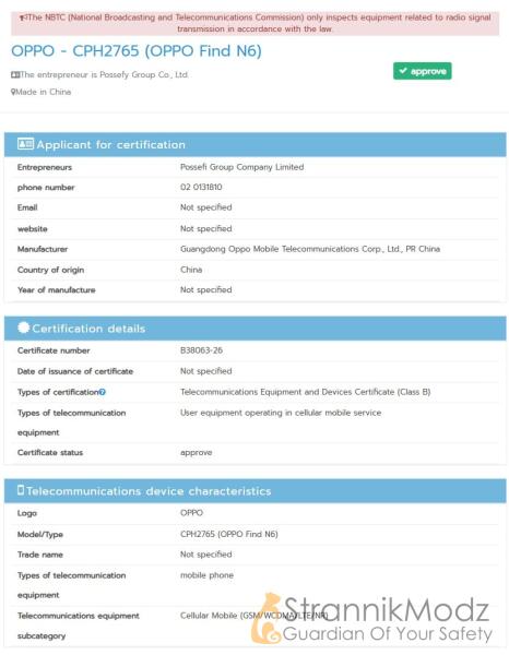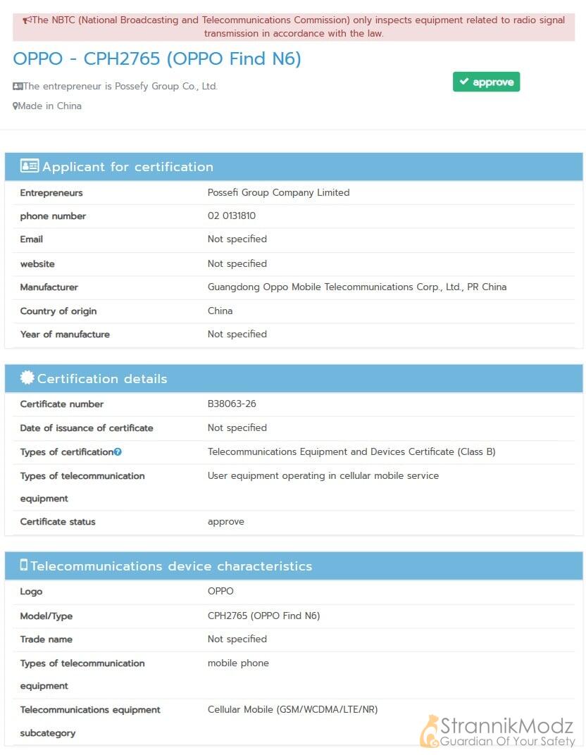 Oppo Find N6 прошёл сертификацию NBTC — борьба за первый складной смартфон на Snapdragon 8 Elite Gen 5 обостряется
